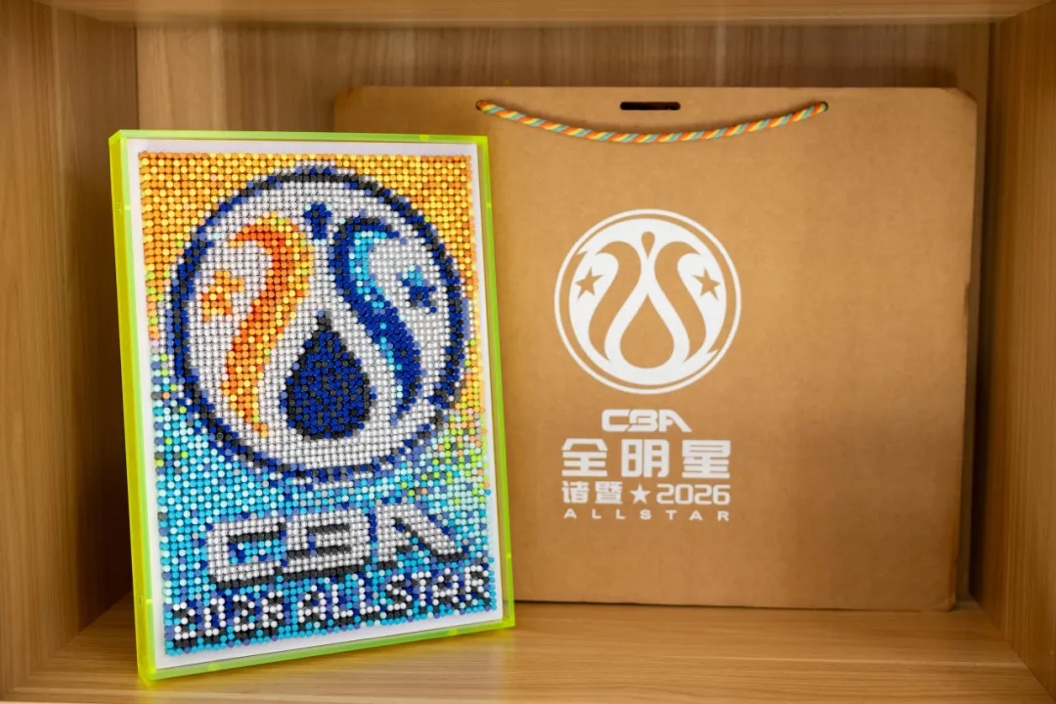 活动现场,中国篮球协会联合党委副书记杨阳与海亮融爱学园校长陈如鑫互赠礼物环节,各位嘉宾收到了由融爱星的孩子们参与创作并完成的艺术作品。作品以CBA全明星赛事为灵感,通过像素图钉拼接而成。圆形LOGO由719颗珍珠图钉组成,象征历届全明星球员累计参与人次;而“CBA”字样则由186颗图钉拼成,对应参与过全明星赛事的186位球员。这个礼物,是由孩子们一颗一颗完成拼接,并在作品背面留下了自己的名字。这份礼物,也成为了他们与CBA全明星之间的一次“温暖”的特别连接。
